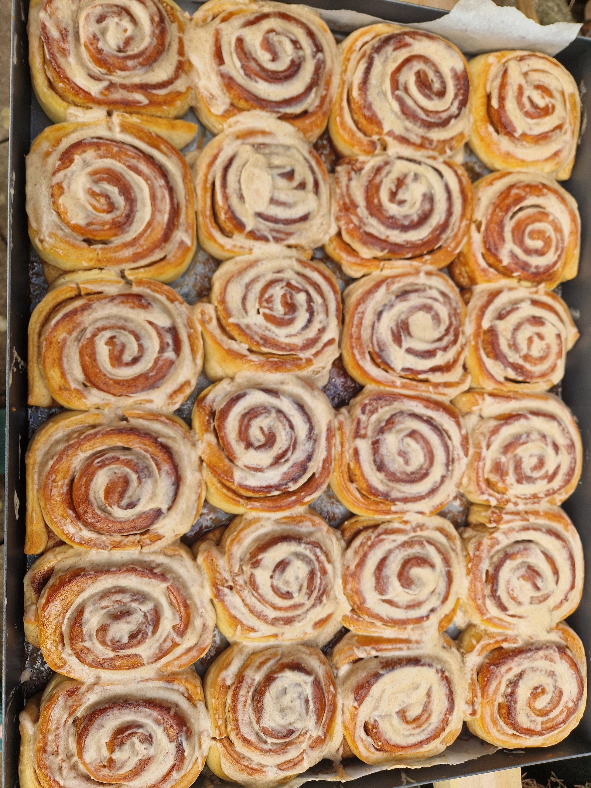 Soft, Brioche style dough, filled with a brown butter cinnamon filling, rolled up, baked and glazed with a brown butter Icing fresh from the oven.
